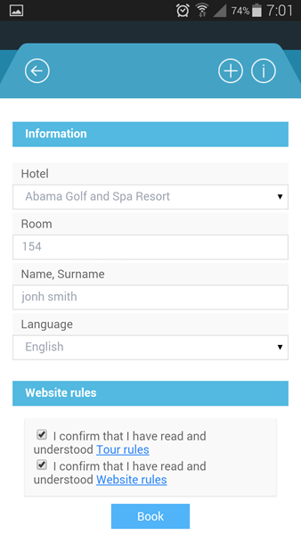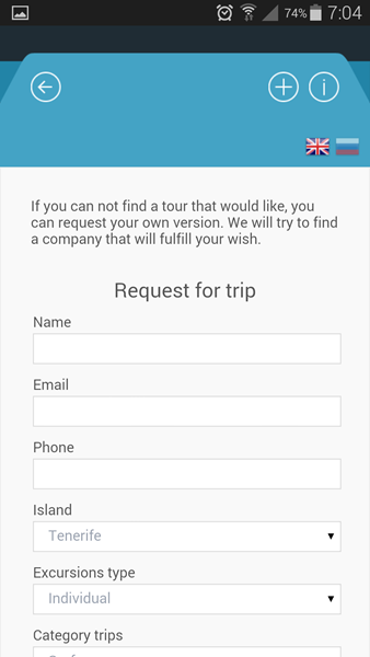 • Información adicional - nombre del cliente , número de teléfono, el idioma elegido para la excursión;
